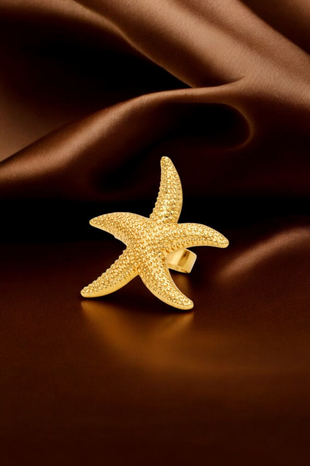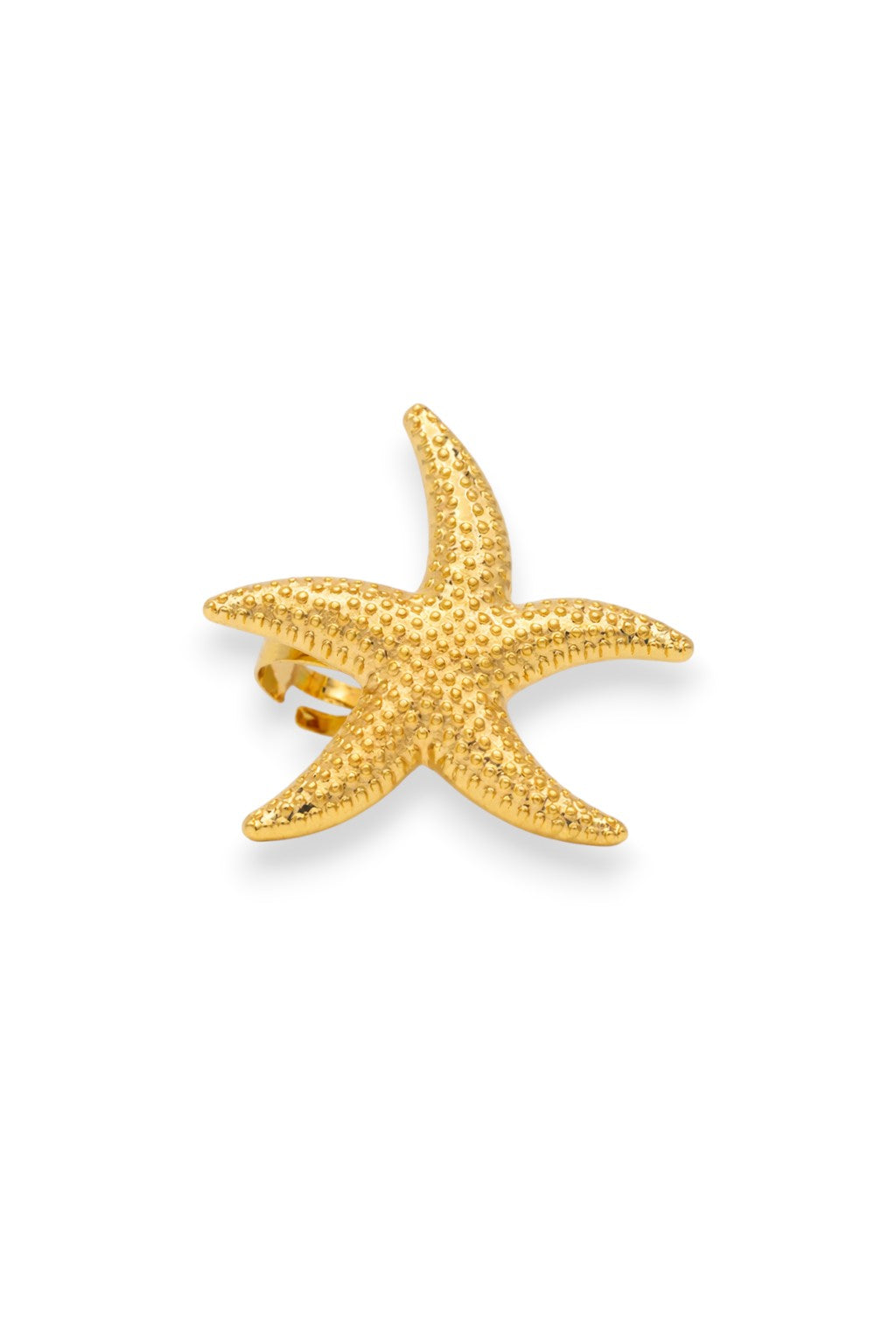 Inspired by the timeless beauty of the sea, Maris—meaning “of the ocean”—captures coastal elegance in a refined statement piece. Crafted with intricate starfish detailing, the ring is finished in luminous 18K gold plating, offering a rich, radiant glow with a luxurious feel.