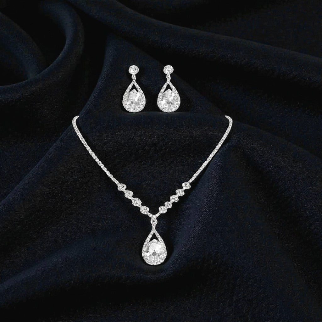 Inspired by the quiet brilliance of a star-lit night, STELLA is a celebration of timeless elegance and celestial beauty. Crafted to reflect the glow of distant stars, this necklace set features luminous stones that catch the light with effortless grace, creating a refined sparkle against the skin. Delicate yet striking, STELLA is designed for evenings that linger and moments that deserve to be remembered — a piece that feels both intimate and radiant, like wearing the night sky itself.
